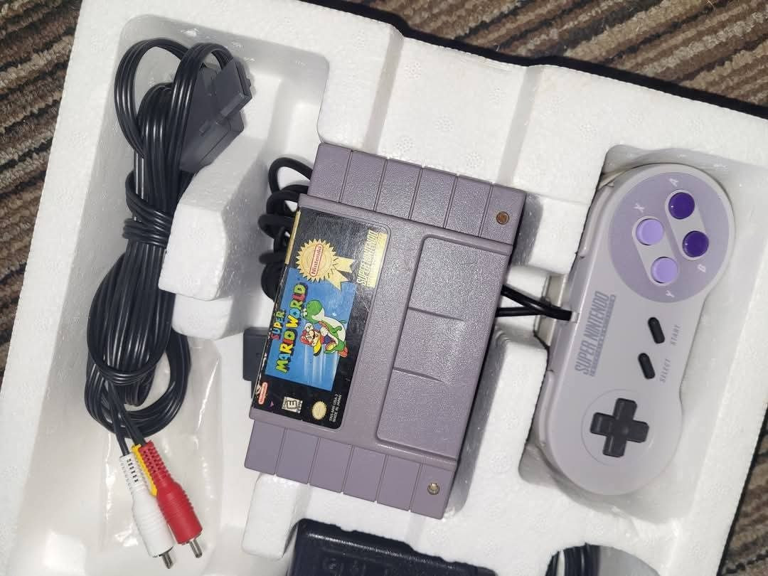 This is an amazing opportunity to own a classic video game console that will transport you back in time to the golden era of gaming. You can now purchase a Super Nintendo SNES console system set complete in box (CIB) that is in perfect working order. The console is manufactured by Nintendo and is designed for playing Nintendo SNES games. It is a must-have for all retro gaming enthusiasts out there.