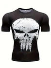 Superhero Punisher Sport T Shirt Workout 3D Compression Quick Dry