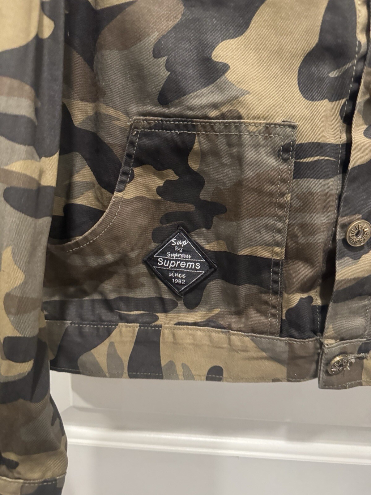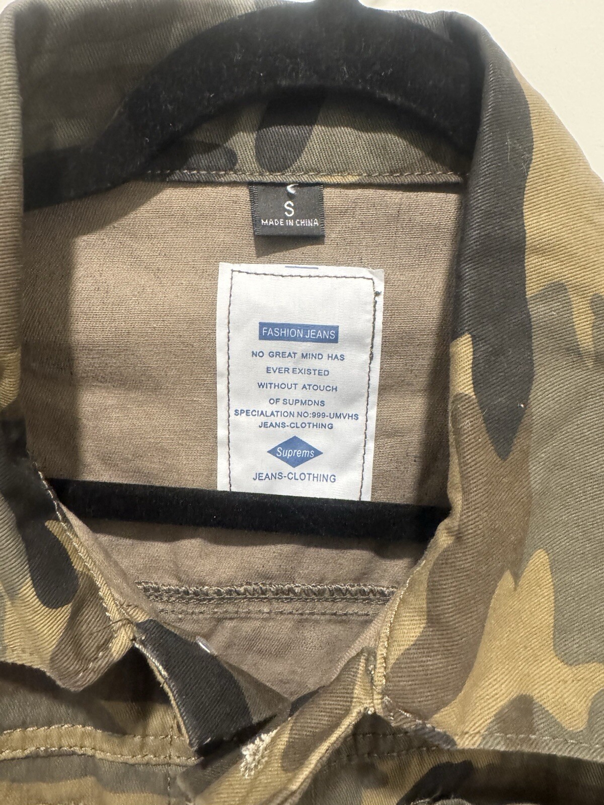 Suprems Jeans Jacket Men Army Size S . Shipped with USPS Ground Advantage.