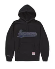 Show off your team spirit with this Supreme Mitchell & Ness NCAA Hooded Sweatshirt in black, featuring the iconic Georgetown Bulldogs logo. Made with high-quality materials, this pullover sweatshirt is perfect for any fan of the team. The hooded sweatshirt comes in a size L, making it a great fit for most men. The sweatshirt is designed with the brand's signature style, making it a stylish addition to any wardrobe. It's perfect for game day or just lounging around the house. The sweatshirt is made with a hood to keep you warm and comfortable. Get your hands on this Georgetown Bulldogs hooded sweatshirt today!