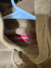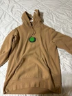 The Supreme SS19 Green Apple Pullover Hoodie is a Men's Medium size hoodie in a brown color. Made of cotton material, it features a round neck with a drawstring closure and long sleeves. This hoodie has a graphic print design with the Supreme logo, giving it a colorful and classic theme. The heavyweight hoodie is suitable for all seasons and offers comfort and style, making it perfect for activities like gym training, walking, and skateboarding.