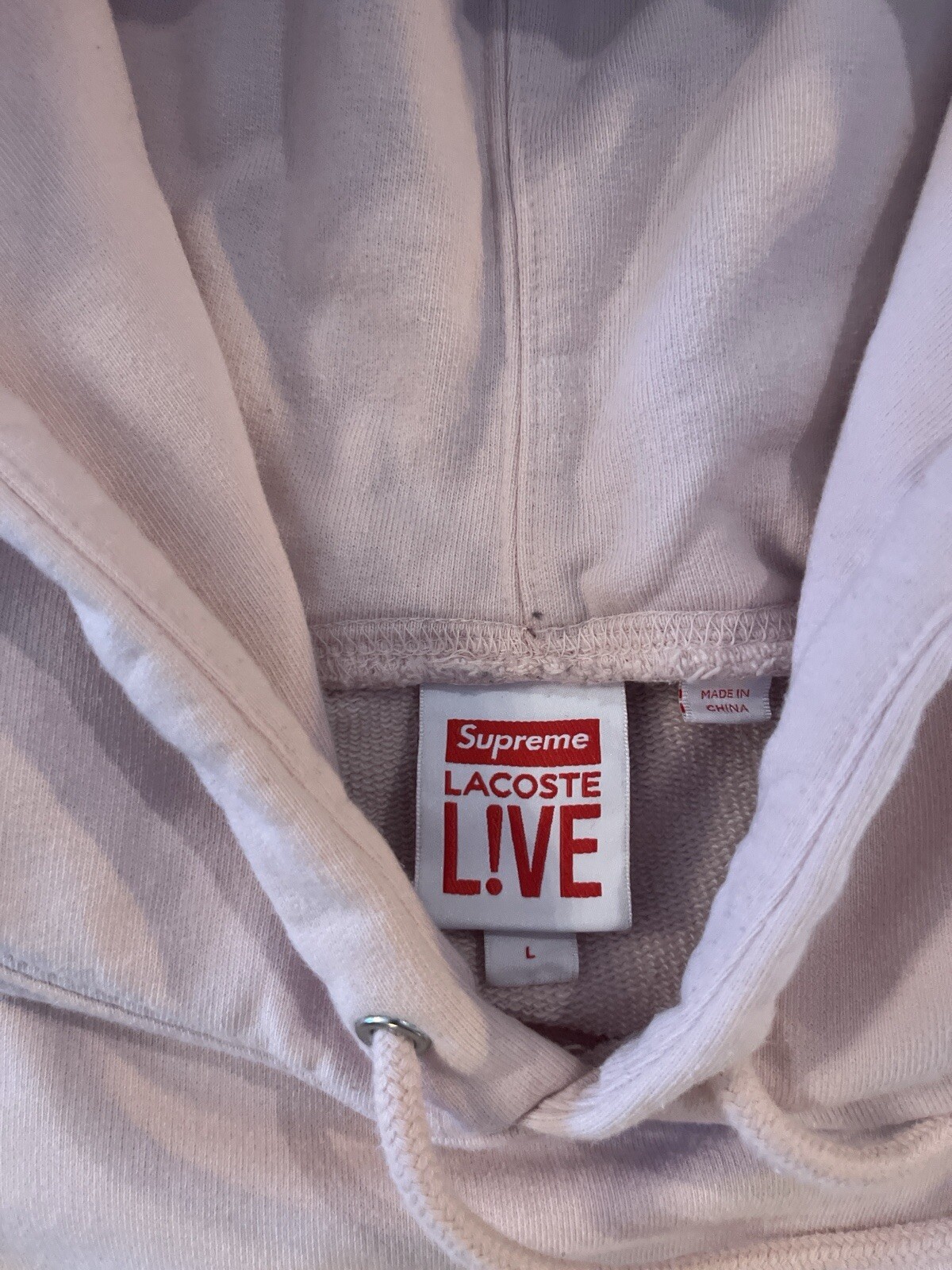 Supreme X Lacoste pullover hoodie in size Size Large Lightly worn with no major signs of wear. Two very small stains on left sleeve (see photo with penny for size reference) Message me with any questions
