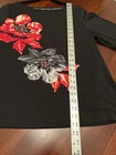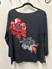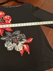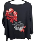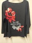 Elevate your wardrobe with this stunning Susan Graver tunic blouse. The black fabric is adorned with dramatic floral details in shades of red and gray, adding a touch of romance and elegance to your outfit. The cowl neckline and pullover closure make it easy to wear, while the long sleeves and casual sleeve type make it perfect for any season. This blouse is versatile and can be worn for both casual and party/cocktail occasions. It is made of a knit fabric that is a blend of polyester and spandex, making it easy to care for and packable. With its collarless design and unlined features, this blouse is a must-have for any fashion-forward woman.