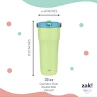 This insulated travel tumbler from zak! designs is the perfect choice for daily hydration! Durable Materials: The 30-ounce tumbler is made with food-, 18/8 stainless steel. All the materials are completely BPA free and sturdy enough to stand up to everyday wear and tear. Vacuum Insulation: The tumbler has vacuum insulation to keep cold drinks cold for hours. The double-wall construction also stops condensation from forming on the outer walls, booting messy water rings out of your life. Flip Spout: The screw-on lid has a flip-up spout that keeps sipping simple and won't leak when it's fully closed. Great for On the Go: The tumbler has a wide bucket handle that gives you a secure and comfortable grip, so it's easy and convenient to carry while you travel. Specifications: 30 oz capacity. Made of durable, food-stainless steel. BPA-Free - zak! is committed to safety. Lid is dishwasher safe, tumbler is top rack dishwasher safe. Do not microwave. Length: 4.44-inch, Width: 4.48-inch, Height: 10.2-inch. Color: Key Lime. SIZE & MATERIAL: This zak! tumbler holds 30 ounces and measures 4.44 by 4.48 inches wide and 10.2 inches tall. It's made with food-, 18/8 stainless steel, which is both sturdy and BPA free, and everything is top rack dishwasher safe for an easy clean. VACUUM INSULATED: The travel tumbler has vacuum insulation to keep drinks cold for hours, and double-wall construction that stops condensation from forming on the outside. No more messy water rings! CONVENIENT SPOUT: The flip-up spout keeps sipping simple and won't leak when it's fully closed. CARRY HANDLE: The lid includes a wide bucket handle for a secure and comfortable grip, so the tumbler is easy to carry on the go. LIFESTYLE FRIENDLY: zak! designs tumblers are the perfect choice for your daily routine! This stylish drinkware is fully reusable—no more disposable cups—and great for staying hydrated all day long.