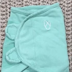 Light wash wear. Good condition. Aqua Green bluish color. Breathable cotton. Size small to medium. Fits 7-14lbs. Slot on back to use while in car seat. Embroidered logo. Bunting. Compare the measurement pictures to your favorite item to ensure the size will be a great fit. Items are inspected and stored in a pet-free and smoke-free area. We offer combined shipping for any order of two or more kids items. Simply add the items to your cart, and you will see the discount. We ship every business day. Feel free to contact us with any questions or comments.
