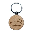 Swan Swimming Outline Engraved Wood Round Keychain Tag Charm