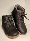This is a pair of size 3 youth boys' ankle boots by Sonoma, model Sourdough, 99H * NOTE-inside tongue tag says “black” but the outer shell really appears more of a dark chocolate brown color. They feature a lace-up closure, cushioned memory foam insole, and breathable mesh lining. The boots are designed for comfort with moderate cushioning level, suitable for activities like walking, school, and hiking. The upper material is a combination of polyurethane and fleece, and the outsole is made of synthetic material. Perfect for travel, activewear, or casual wear in all seasons. Never worn New without tags, without box