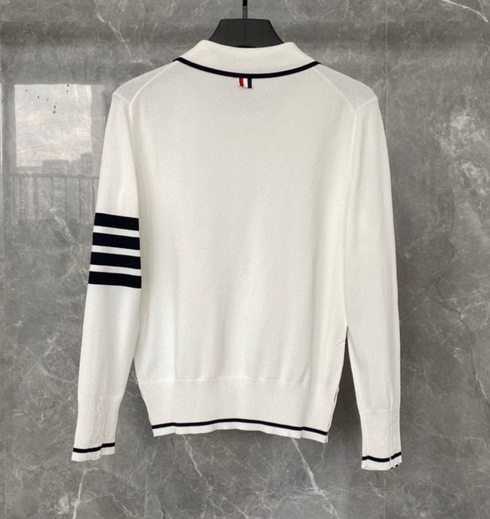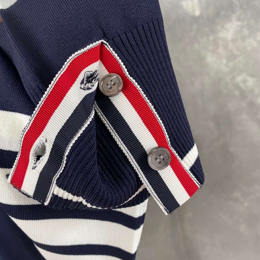 Thom Browne Collar Knit Sweater Top Contrasting Polo Top for Women Size Bust Sleeve Length Unit 0 88 54 58 CM 1 92 55 60 CM 2 96 56 62 CM