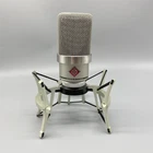 Styled in a nickel finish, TLM-102 Large-Diaphragm Studio Condenser Microphone from Neumann is a large diaphragm condenser microphone operating in a cardioid polar pattern. It has the ability to withstand very high sound pressure levels. The capsule, with its high SPL rating, permits the recording of percussion, drums, amplifiers, and other very loud sound sources. The microphone is equally capable when recording lower volume sounds due to its very fast transient response. However, its most important applications are in the realm of vocals and speech. A slight boost above 6 kHz provides great vocal presence, while below 6 kHz the frequency response is extremely linear for minimal coloration and a clearly defined bass range. The capsule has an elastic suspension for minimizing structure-borne noise, while an integrated pop screen in the grille aids in suppressing plosives in vocal and speech recording .