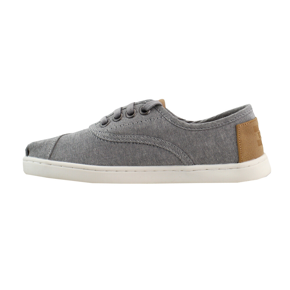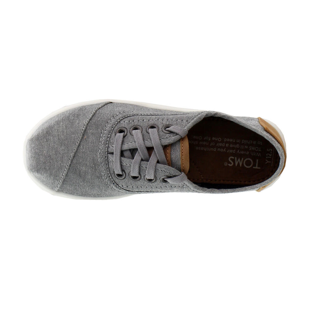 Cordones Lace Up Sneakers (Little Kid) 10009420 Product Details Canvas fabric upper Lace-up closure Fabric lining Cushioned footbed Vulcanized rubber sole Get them dressed in record time with the Cordones Cupsole an easy slip-on sneakers outfitted with all-day comfort and a low cut silhouette. Additional Details Color: Grey Occasion: Casual Gender: Boys Age: Youth Brand: TOMS