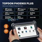 TOPDON Phoenix Plus 2 Full System €CU Online Coding Diagnostic Scanner Tool TOPDON Phoenix Plus 2 Scanner, Bidirectional Scan Tool, €CU Coding, Topology Map Car Diagnostic Scanner, OEM Full System, 41+ Service, AutoAuth for FCA SGW, V.A.G Guided, CAN-FD Supported, 2 Years Free Update rand TOPDON Product Dimensions 11"L x 2"W x 7"H Operating System V.A.G Guided Function Language Multilingual Display resolution 1280x800 About this item €CU Coding Scan Tool➤ This TOPDON Phoenix Plus 2 scanner featuring €CU Coding, which is compatible with Benz, B.M.W, V.A.G, Porsche, etc. Guided Function for V.A.G, Guided DTCs Trouble Shooting for Porsche (after 2011). Setting & Changeover for Benz and etc.. Personalization for V.A.G, Toyota and other brands. Bidirectional Control, 41+ Hot Reset Services, All System s Diagnostics, AutoVIN & AutoScan, with non-16pin connector kit. Bi-directional Control in TOPDON Phoenix Plus 2➤ Turn off ACC, Lane Keeping Assist, o.i.l pressure control test, vehicle level position calibration, brake vacuum pump, wheel speed sensor supply, windows calibration, language change, A/F Reset, coolant bleed, transport mode, AdBlue reset, Stop/Start Reset and etc.. Please check the compatibility with us. We also provide 1 year product assurance. Programmable Module Installation➤ TOPDON Phoenix Plus 2 scanner support PMI(Programmable Module Installation) function, Compatible with Ford /Lincoln/ Mazda and etc. This function is generally required after the €CU module has been replaced, otherwise the €CU will not work properly. Variant Coding➤ Some states/countries require the automatic activation of the headlights while driving, which results in another vehicle variant. Variant coding of TOPDON Phoenix Plus 2 scanner includes the enabling and disabling of software-driven functions. 41+ Hot Reset Services➤ This TOPDON Phoenix Plus 2 bidirectional scan tool can perform: Adblue/CBS/O.i.l/ SAS/EPB/TPMS/BMS/ETS/Gear/Brake/AFS/Gearbox/Sunroof/SUS/AFS Headlamp Reset and more. with scheduled procedures and smooth logical workflow to make maintenance a breeze in the workshop. A QR code is added to the PDF diagnostic report, which is convenient for mobile phones to scan the QR code to view and share the diagnostic report. AutoVIN & AutoScan + All Available System Access + Active Test➤ This TOPDON phoenix scanner can quickly make an automatic connection to the vehicle €CU modules in all available onboard systems such as transmission, engine, body, power and many more, to perform a comprehensive automatic scanning to locate faulty area and retrieve DTCs related. Also a bi-directional car scanner to effortlessly determine a specific subsystem/component status instead of using vehicle’s own controls. Advanced Hardware in TOPDON Phoenix Plus 2➤ The Android10.0 based TOPDON car diagnostic scan tool, equipped with 10.1 touchscreen, 64G ROM storage, 10+ hours running, backing up easy diagnostics for over 50,000+ models after 1996, and still expanding thanks to One-Touch Wi-Fi software free update for 2 years. AutoAuth Access➤ SGM in FCA vehicles for successful OBD2 diagnostics, active test, calibrations, and more; compatible with 2017 and later Chrysler, Dodge, Jeep, Alfa Romeo, Fiat, etc. This function extends larger coverage to 99% of global vehicles, improving the efficiency of your diagnostics. Product Description A Versatile Must-Have Diagnostic Bi-directional Scanner A professional diagnostic scan tool is indispensable to any automotive repair business. The Phoenix Plus 2 scanner will expand a technician’s capabilities, speed up jobs, and pay for itself in a short amount of time. : Wide Car Coverage: 200+ car brands, 50,000+ models from the US, European and Asian car markets; still expanding. Online €CU Coding: restore the vehicle functional status after €CU replacement (compatible with V.A.G, VW, Skoda, Seat, Hyundai / Kia SRS). €CU Coding: reprogram adaptive data after making repairs or replacements; change software to customize a vehicle in a smarter way; deactive unneeded functions: deactivating the auto start-stop / changing the chimes / deactivating buzz sounds and etc. (compatible with Nissan, Infiniti, Nissan GT-R, Toyota, Lexus, Scion, Hyundai, Kia, Benz, Land Rover, Jaguar, Subaru, Ford, Mazda, Porsche and etc.). 41+ Service Functions: allow you to get the job done without outsourcing, such as O.i.l Resets, EPB Resets, Suspension Resets, SAS Resets, and more. **See details on page. Bi-directional/Active Test: Send commands to related €CUs and control actuators to perform corresponding actions to locate the faults accurately. AutoAuth Access with TOPDON Phoenix Plus 2: Diagnose FCA vehicles which equipped with a s€CUrity gateway firewall for successful reset, bi-directional control test, calibrations, and more works on Chrysler, Dodge, Jeep, Alfa Romeo, Fiat, etc. (please reach us for details). You can pay an annual fee for software to get access to it (**The yearly subscriptions fees required by AutoAuth not TOPDON Phoenix Plus 2). V.A.G Guided Function: skip the step of entering the s€CUrity access code & channel number of VW, A.udi, Skoda, Seat vehicles for successful diagnostics. Topology Module Mapping: intuitive color-coded topology display of all structures between vehicle modules for easy troubleshooting. Smart AutoVIN & AutoScan: automatically skip the manual input of vehicle’s VIN code and head you towards the matched diagnostics on the system selected. Camera VIN Scan: quick recognition of vehicle barcode with rear camera. Smooth and stable operation with its high-quality hardware: Android 10.0 OS, Quad-Core 2.0GHz Processor, 4GB RAM & 64GB ROM, 10.1” IPS Touch Screen. 2 Years Updates at No Costs: to bring bug fixes and add new vehicles to the coverage with one-touch via Wi-Fi. 24 Languages Support: English, French, Spanish, German, Russian, Italian, Portuguese, Traditional Chinese, Japanese, Danish, Norwegian and etc. Customize