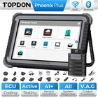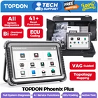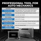 TOPDON Phoenix Plus Car Bidirectional OBD2 Scanner Online Coding Diagnostic Tool TOPDON Phoenix Plus E/CU Coding Scan Tool, Car Diagnostic Bidirectional Scanner, Key Programming, All System Scanner, 41+ Service, AutoAuth for FCA SGW, 2 Years Free Update TOPDON Phoenix Plus is a Professional and all-in-one diagnostic tool .it have everything you need to diagnose, research and manage any issues at fingertips with its smooth logical workflow, where fully optimized easy-to-use software allows advanced OE-level diagnostics of online coding, complete bi-directional functions, access to all vehicle modules, etc. equipped with the latest Android 10.0, preparing you to take on the toughest jobs with confidence. Evolutionary Diagnostic Tool for Professionals, All-in-One Features Greet You The Phoenix diagnostic system reflects our ambitions to achieve the ultimate in diagnosis, repair and service. This high-spec handheld diagnostic tool will maximize your efficiency for complex diagnostic routines; let you get quick answers to problems with its versatile and smart solutions: Wide Car Coverage: 150+ car brands, 10,000+ models from the US, European and Asian car markets; still expanding. Online E/CU Coding: restore the vehicle functional status after E/CU replacement (compatible with Audi, VW, Skoda, Seat, Hyundai / Kia SRS). E/CU Coding: reprogram adaptive data after making repairs or replacements; make software modifications to customize a vehicle in a smarter way (for BMW E/F/G Chassis, Porsche). 41+ Service Functions: a rich package of reset & relearn services for productive maintenance work. **See details on page. Bi-directional/Active Test: activate or test car components on demand. AutoAuth Access: bypass SGM in FCA vehicles for successful OBDII diagnostics, active test, calibrations, and more; works on 2017 and later Chrysler, Dodge, Jeep, Alfa Romeo, Fiat, etc. V.A.G Guided Function: skip the step of entering the security access code & channel number of VW, Audi, Skoda, Seat vehicles for successful diagnostics. Topology Module Mapping: intuitive color-coded topology display of all structures between vehicle modules for easy troubleshooting. Smart AutoVIN & AutoScan: automatically skip the manual input of vehicle’s VIN code and head you towards the matched diagnostics on the system selected. Camera VIN Scan: quick recognition of vehicle barcode with rear camera. Advanced Configuration: Android 10.0 OS, 4-core 2.0GHz processor, 4GB RAM & 64GB ROM (non-expandable), 10” HD 1280*800 touchscreen, 8MP rear camera, wireless VCI connection, etc. Non-16pin Connectors & Cables Kit: enable to work on non-OBDII vehicles. 2 Years Updates at No Costs: to bring bug fixes and add new vehicles to the coverage with one-touch via Wi-Fi. 9 Languages Support: English, French, Spanish, German, Russian, Italian, Portuguese, Traditional Chinese, Japanese. Advanced E/CU Coding Restore Functional Status after Repair or Replacement After making repairs or replacements, you can use this bi-directional diagnostic scanner to re-flash the vehicle control modules, clear the original memories stored in E/CU, and write the adaptive data into specific components to get your vehicle back on the right track. Customize and Upgrade Vehicle in Your Own Way You can also use TOPDON phoenix plus scan tool to make manual tuning to break the limitations and restrictions of the market-specific settings of the car when it left the factory. With the help of this scan tool’s E/CU coding, you can disable annoying functions or activate high-end features, make software modifications to alter how it behaves originally. Here are some examples: - Disable the automatic start/stop. So when you press down the accelerator pedal/brake pedal, your car won’t automatically start/stop. - FCA vehicle’s car doors can be unlocked with just one press of the key fob. - Make the moving pointer move, perform self check, and then return to the initial point at the time the ignition is turned on. - The fuel gauge can show the real-time filling quantity of fuel in the tank. - The car lock sound effect will be available at the time the car is locked. - Use the key fob to make all car windows automatically closed with just one press of the lock button. - Keep the daytime driving lights lighted on for 20 seconds. - When you press the brake pedal, your stoplights can be all lighted up. - Your turn signals & rear fog lights can be alternatively flashing. **All above customizations are probably not available for some specific car models. Reach us for details. 41+ Hot Service Functions, Accessible for Complete Car Maintenance Oil Reset: reset the oil service lamp after changing the engine oil; re-calculate the optimal oil life change interval for the engine oil maintenance being on schedule. Injector Coding: write the new injector code into the car system for the correct cylinder injection quantity. SAS Reset: reset the steering angle to zero to keep the car running straight. DPF Regeneration (**for both diesel and gasoline vehicles): help remove the particulate matter to keep the trap stable. BMS Reset: register the battery after replacement. Throttle Adaptation: initialize the throttle actuators to the default state. ABS Bleeding: help exhaust the air in ABS system in an easy way. EPB Reset: help replace and reset the brake pad. Immobilizer: disable lost keys to prevent the car from being stolen, and add new keys. **Only available for cars with low-grade IMMO systems. Sunroof Reset: initialize the sunroof when to be locked off, or closed. Suspension Reset : adjust the vehicle body height sensor for level calibration. Gearbox Reset: help complete the gearbox self-learning to improve gear shifting quality. TPMS Reset: reset the tire pressure. Condition Based Service(CBS) Reset: This diagnostic scan tool allows you to reset the engine oil, spark plugs, front brakes, rear brakes, coolant, diesel particulate filter, brake fluid, micro filter, vehicle annual inspec