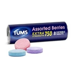 Product Description TUMS Extra Strength Assorted Berries Antacid Chewable Tablets for Heartburn Relief, 8 count (Pack Of 3) TUMS Chewable Antacid Tablets go to work in seconds, so you can forget your heartburn and get back to the moments that matter. TUMS extra strength antacid chewable tablets contain 50 percent more acid neutralizing power than regular strength TUMS, for fast acting relief. Each TUMS chewable antacid contains 750 mg calcium carbonate to quickly and effectively provide heartburn relief, sour stomach relief, acid indigestion relief and relief of upset stomach associated with these symptoms. TUMS heartburn medicine neutralizes acid on contact, giving you fast relief. Adults and children 12 years and older may chew two to four heartburn tablets, which come with pleasant assorted berry flavors, as symptoms occur or as directed by a doctor. Known as a trusted brand to fight heartburn fast for 90 years, TUMS is America’s #1 antacid and the #1 physician, pharmacist and OBGYN-recommended adult antacid brand. With TUMS assorted berries calcium carbonate tablets, you're ready when heartburn strikes. CONTENTS: 1 roll containing 8 TUMS Chewable Antacid Tablets for Extra Strength Heartburn Relief in easy to take, delicious assorted berry flavors MULTI-SYMPTOM RELIEF: Treats the four signs of heartburn: burning in the chest, acid indigestion, sour stomach and upset stomach FAST AND POWERFUL STRENGTH: Nothing works faster! These TUMS antacid tablets go to work instantly by starting to neutralize acid on contact GLUTEN FREE AND KOSHER: This heartburn and acid indigestion remedy has the active ingredient 750 mg calcium carbonate #1 DOCTOR RECOMMENDED: TUMS is the #1 recommended adult antacid brand by doctors, pharmacists and OBGYNs TRUSTED BRAND: America's #1 antacid, providing trusted heartburn relief for 90 years, supported by a satisfaction guarantee TUMS Extra Strength Assorted Berries chewable antacids offer fast acting, ultra strength heartburn relief so you can enjoy all of your favorite foods TUMS antacid tablets relieve heartburn, sour stomach, acid indigestion, and upset stomach associated with these symptoms Delivers double the acid neutralizing power per tablet of regular strength TUMS antacids Comes in a delicious assorted berries flavor and goes to work in seconds TUMS heartburn medicine is America’s number 1 antacid 8 Tablets Each Roll HSA AND FSA ELIGIBLE: HSA and FSA eligible product HSA and FSA eligible item Inactive Ingredients Adipic acid corn starch FD&C blue #1 lake FD&C red #40 lake flavors mineral oil sodium polyphosphate Ingredients Active Ingredients: Per tablet Calcium Carbonate USP 750mg - Antacid.; Inactive Ingredients: Adipic acid, corn starch, FD&C blue #1 lake, FD&C red #40 lake, flavors, mineral oil, sodium polyphosphate. Active Ingredients Calcium carbonate 750 mg Active Ingredient Name Calcium Carbonate