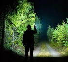 POWERFUL TACTICAL LED LAMP XHP50 -ZOOM SPECIFICATION: ☝️ Waterproof – thanks to its resistance to moisture and rain, the flashlight will work in all weather conditions. ☝️ Zoom function – the ability to adjust the light flow allows you to precisely illuminate both close and distant objects. ☝️ Charge level indicator – intuitive indicator informs about the battery status, helping to avoid unexpected discharge. ☝️ Cordless or battery-powered – gives you flexible power supply, adapting to your needs. ☝️ 5000lm luminous flux – strong, high-brightness light is ideal for demanding tasks. ☝️ Micro USB – enables quick and convenient charging. ☝️Suitcase – a practical suitcase makes it easy to transport and store the flashlight and accessories. ☝️5 lighting modes – various light settings allow you to adjust the intensity and effect to the situation. ☝️Power 10W – high efficiency guarantees bright and energy-saving lighting. ☝️Range 1500M – impressive range allows effective lighting of large spaces. RECHARGEABLE OR BATTERY POWERED The flashlight is equipped with a rechargeable battery and a basket for three AAA batteries. This allows you to use the included USB cable to charge the battery with a regular USB phone charger, or use the flashlight on batteries when traveling when you don't have access to a power outlet.