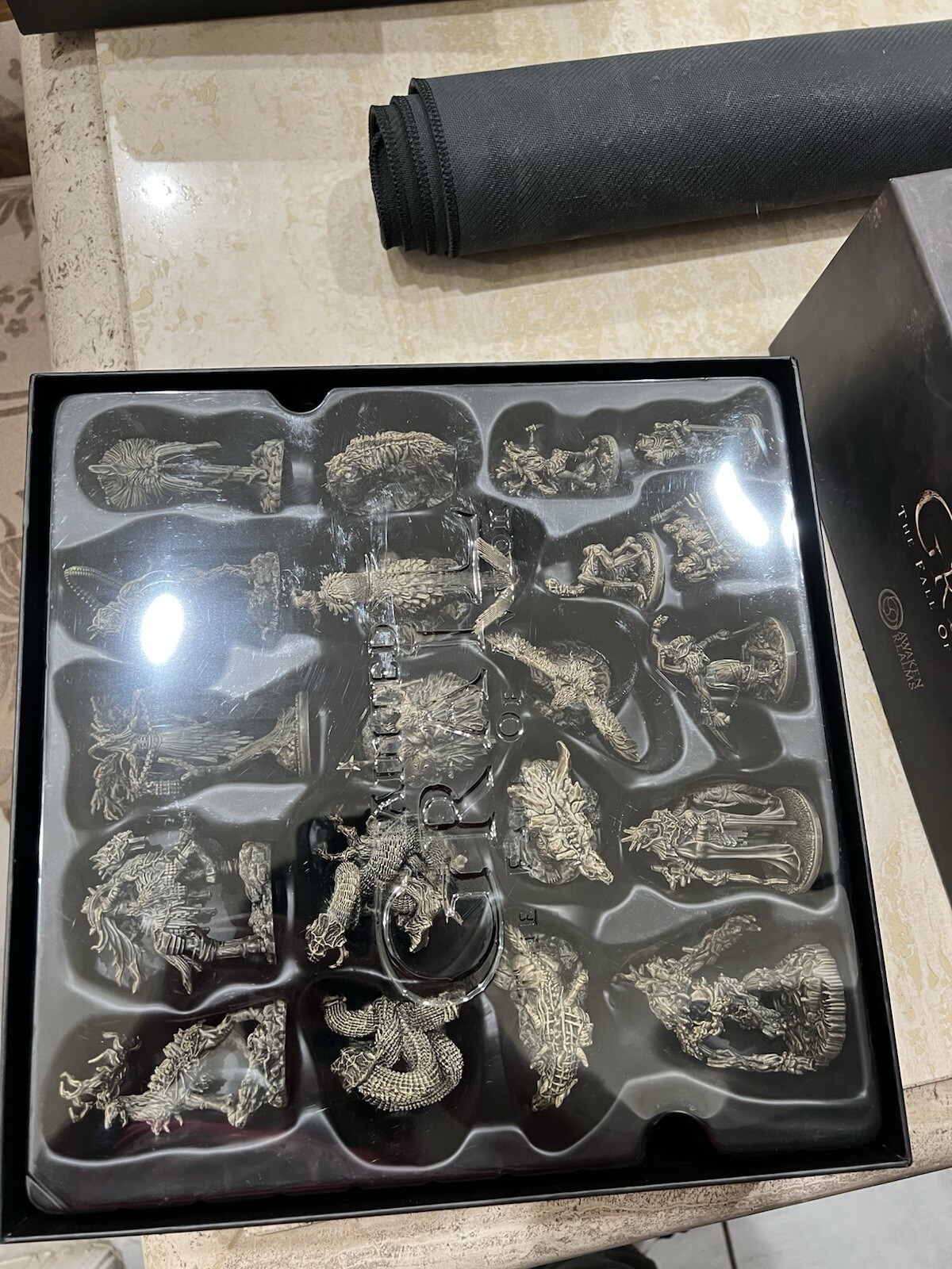 Open box/some sealed of Tainted Grail Fall of Avalon. Its was played once, the miniatures are sundropped and the comes with main sleeves for the base game. Pick up is preferred but can ship also. Let me know about any questions!