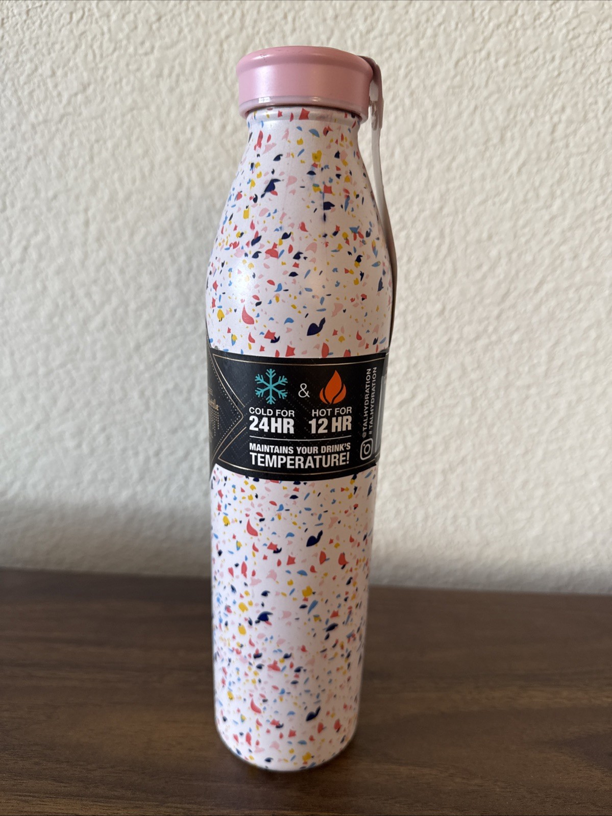 The Tal Stainless Steel Double Wall Insulated Modern Water Bottle is a 20oz tumbler designed for both adults and children. With a unique confetti color scheme, this bottle is perfect for those who want to make a statement while staying hydrated. Made of high-quality stainless steel, it features double wall insulation to keep drinks cold for longer periods. The sleek design and modern aesthetic make it a stylish choice for anyone looking for a durable and practical water bottle.