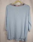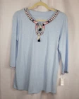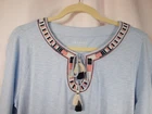 PLEASE READ THE ENTIRE LISTING IT WILL ANSWER ALL YOUR QUESTIONS. ALL MY ITEMS ARE STORED IN ZIP LOCK BAGS WHILE WAITING TO BE PURCHASED. ALL MY ITEMS ARE OPENED BY ME TO CHECK FOR SMELLS BEFORE BEING SHIPPED Light Blue Color Fabric 60% Cotton 40% Modal Tassel Tie 19" Shoulder to Cuff 20" Armpit to Armpit 26% Shoulder to Hem 22" Flat Front Side to SideSide to Side @ Hip
