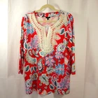PLEASE READ THE ENTIRE LISTING IT WILL ANSWER ALL YOUR QUESTIONS. ALL MY ITEMS ARE STORED IN ZIP LOCK BAGS WHILE WAITING TO BE PURCHASED. ALL MY ITEMS ARE OPENED BY ME TO CHECK FOR SMELLS BEFORE BEING SHIPPED Lace Detail Front Bib French Country Vib 19" Shoulder to Cuff 22" Armpit to Armpit 27" Shoulder to Hem 23" Flat Front Side to Side @ Hip