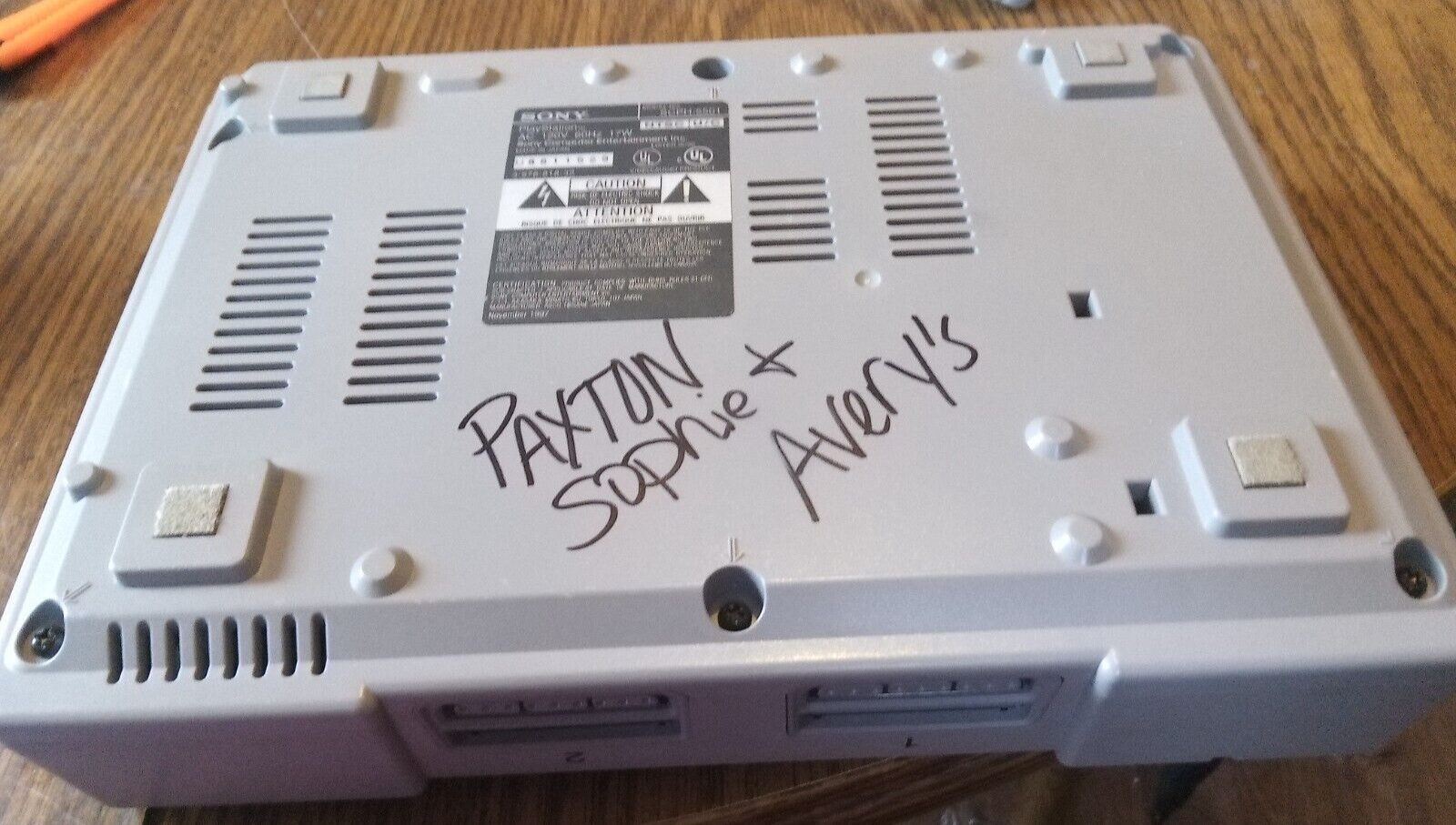 Sony Playstation Model # SCPH-5501 Black Marker On Side And Bottom Of Console New A/V cable And AC power Cord One Controller Tested Works