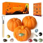 Thanksgiving Gifts Pumpkin Dig Kit, 3 Pcs Pumpkin Bath Soap Orange with Gemstone Inside Halloween Toys for Explore Discover Gems Crystal Halloween Gift for : pumpkin digging kit combines science education, Exploration and entertainment, and is packaged in a beautiful gift box, highly recommend this pumpkin dig kit for your little geologist or curious Pumpkin Soap Digging Kit: comes with three orange pumpkin soaps, each pumpkin has 3 gems or crystals inside; with a gem instruction sheet and a digging tool; The digging aspect of the kit adds an element of surprise and anticipation Upgrade Diversified Gameplay: This digging kit is made of soap, and the digging process does not produce dust; the pumpkin scraps after digging can be collected for hand washing, or melted with water to make bubble liquid, or put it in a container and use hot water above 140 degrees Fahrenheit to heat and melt, then pour it into a mold to make the model you want; please use it under adult supervision Dig It Up: This pumpkin dig kit is a fun and engaging activity for Halloween enthusiasts, dig and find 9 gems, namely white turquoise, flame stone, red molten crystal, east spirit stone, obsidian, aquatic agate, rose quartz, tiger eye stone, gold stone jade; the dug gems or crystals can be combined Instructions to learn gem knowledge Halloween Science Kit: The pumpkin dig kit will take some time to dig out, our gem mining kit toys allows your to experience the process of "hands-on digging and discovering gems, triggering thinking, and finding answers"; At the same time, parents (teachers) can accompany their children to explore together