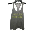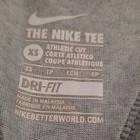 The Nike Tee Activewear Tank Top Size XS. The tank top is 60% Cotton and 40% Polyester. Machine washable. Sleeveless. Racerback. Multicolored. The primary color of the tank top is gray. Soft. Stretchy. Smooth feeling. Lightweight. The tank top shows signs of normal wear and some of the lettering is cracking. Please see pictures for more details. With the garment laying flat, the measurements are as follows: armpit to armpit is 14 1/2 inches and from back of the neck to bottom of the tank top is 22 inches. Preowned but in fair condition.