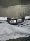 This is a pair of men's cargo shorts by The North Face, designed for outdoor activities like hiking. The shorts are in size 2XL with a waist size of 40 inches and a 10-inch inseam. They feature a solid green color, a zip closure, and a belt for added convenience. Made from a blend of polyester and nylon, these shorts are easy to care for and have a comfortable athletic fit. With a flat front design and various accents like buttons and zippers, these shorts are both practical and stylish for casual or workwear outfits during the summer, fall, or spring seasons.