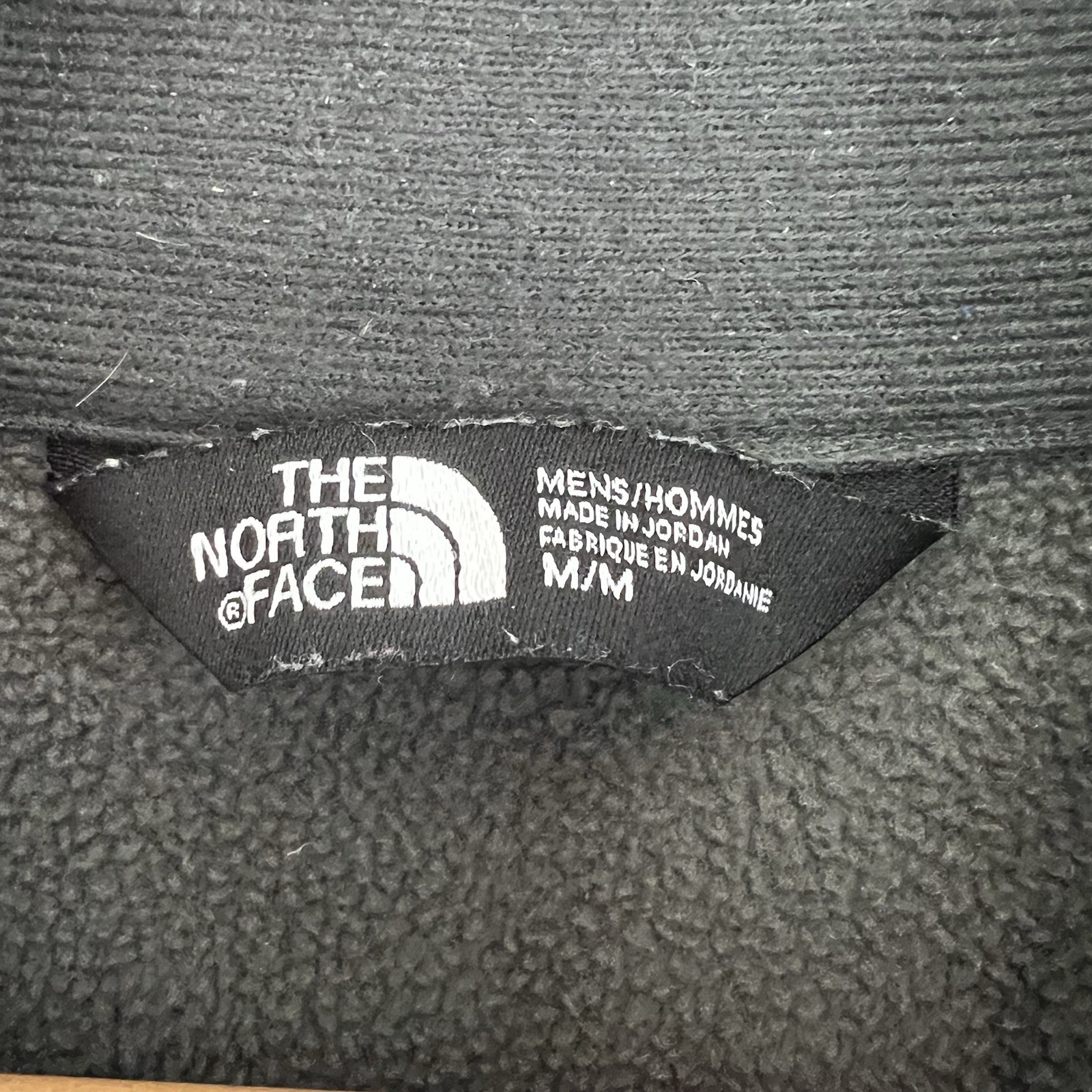The North Face Jacket is a stylish and practical addition to any man's wardrobe. This gray full zip sweater is made from polyester fleece fabric, making it both warm and comfortable for casual occasions. It features a collared neckline, long sleeves, and a zip closure for easy wear. The athletic fit size M and zip pockets add to its functionality, while the outdoor theme with The North Face logo accents give it a sporty look. Perfect for walking, golf, or hiking, this sweater is both practical and stylish for the outdoorsy man. Great preowned condition with no rips, stains or tears! See photos for measurements.