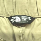 SMALL PULL RIGHT SIDE These khaki cargo shorts from The North Face are perfect for outdoor enthusiasts and casual wear alike. Featuring a solid pattern and flat front, they are made from durable nylon material that is easy to care for and quick to dry. The shorts come with a belt for a comfortable fit and several pockets for convenient storage. With a zip and button closure, these shorts are suitable for travel, workwear, and casual occasions. They are available in size medium and are machine washable. The embroidered logo and beachy theme make them a stylish addition to any wardrobe.