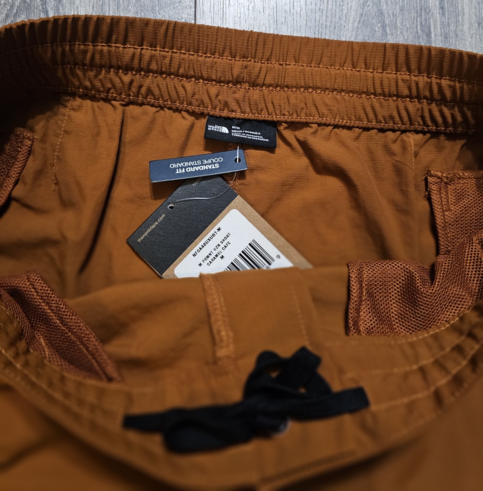 Hit the trails with confidence in these North Face Paramount Horizon Hiking Shorts. Crafted from durable, lightweight microfiber polyester and nylon, these shorts are ideal for a variety of outdoor activities, from casual wear to travel and work. The solid caramel cafe color offers a versatile look, while the handy 5-pocket design keeps essentials close at hand. Enjoy a comfortable regular fit with a mid-rise waist and a 10-inch inseam, perfect for warmer seasons. The flat front chino style shorts feature a convenient zip closure, complemented by button and logo accents. Whether you're exploring nature or heading to a casual event, these shorts are a reliable choice for any occasion.