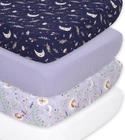 The Peanutshell Baby Girl Crib Sheets, Fitted Sheets for Crib, Purple Product Details Color: Purple Material: Polyester Size: Crib Fabric Type: 100% Microfiber Pattern: Floral Product Dimensions: 52"L x 28"W Brand: The Peanutshell Thread Count: 300 Product Care Instructions: Machine Wash Number of Pieces: 4 Fitted Sheet Pocket Depth: 8 Inches Manufacturer: Farallon Brands Item Weight: 1.43 pounds Country of Origin: China Item model number: Lunar Love Sweet Baby Girl Sheets Set – This floral and celestial themed 4 pack crib sheet set in lavender and navy are the perfect start for your baby girl Super Soft and Breathable – The fabrics in our fitted crib sheets have been carefully selected to be soft, comfortable, and breathable. Made from 100% microfiber, these baby crib sheets will be the perfect addition to your little one's nursery High Quality & Easy Care – Designed to be fade resistant and machine washable for easy care. For best long-term care, machine wash on cold with similar colors on a gentle cycle. You can then tumble dry on low heat or line dry to best preserve the bright and colorful designs of this quick drying material Perfect Fit – This set includes four fitted infant sheets sized for a standard sized crib or infant mattress (52x28 inches) and has been tested for the perfect fit. With full elastic trim all around 4 sides, these sheets are easy to use and safely securable with 8 inch deep pockets