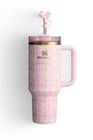 The Stanley × LoveShackFancy Quencher Blooming Heirloom 40 OZ Tumbler is the perfect addition to your kitchen collection. With a capacity of 40 ounces, it is perfect for storing your favorite beverages. The tumbler features a purple color with a Happy Thoughts pattern that adds a touch of positivity to your day. Made by Stanley, a trusted brand in kitchen products, this tumbler is durable and long-lasting. The tumbler is designed to keep your drinks hot or cold for hours, ensuring that you always have a perfect temperature drink on hand. The LoveShackFancy theme adds a touch of elegance to the tumbler, making it a perfect gift for any occasion. Add this tumbler to your collection today and enjoy your favorite beverages in style!