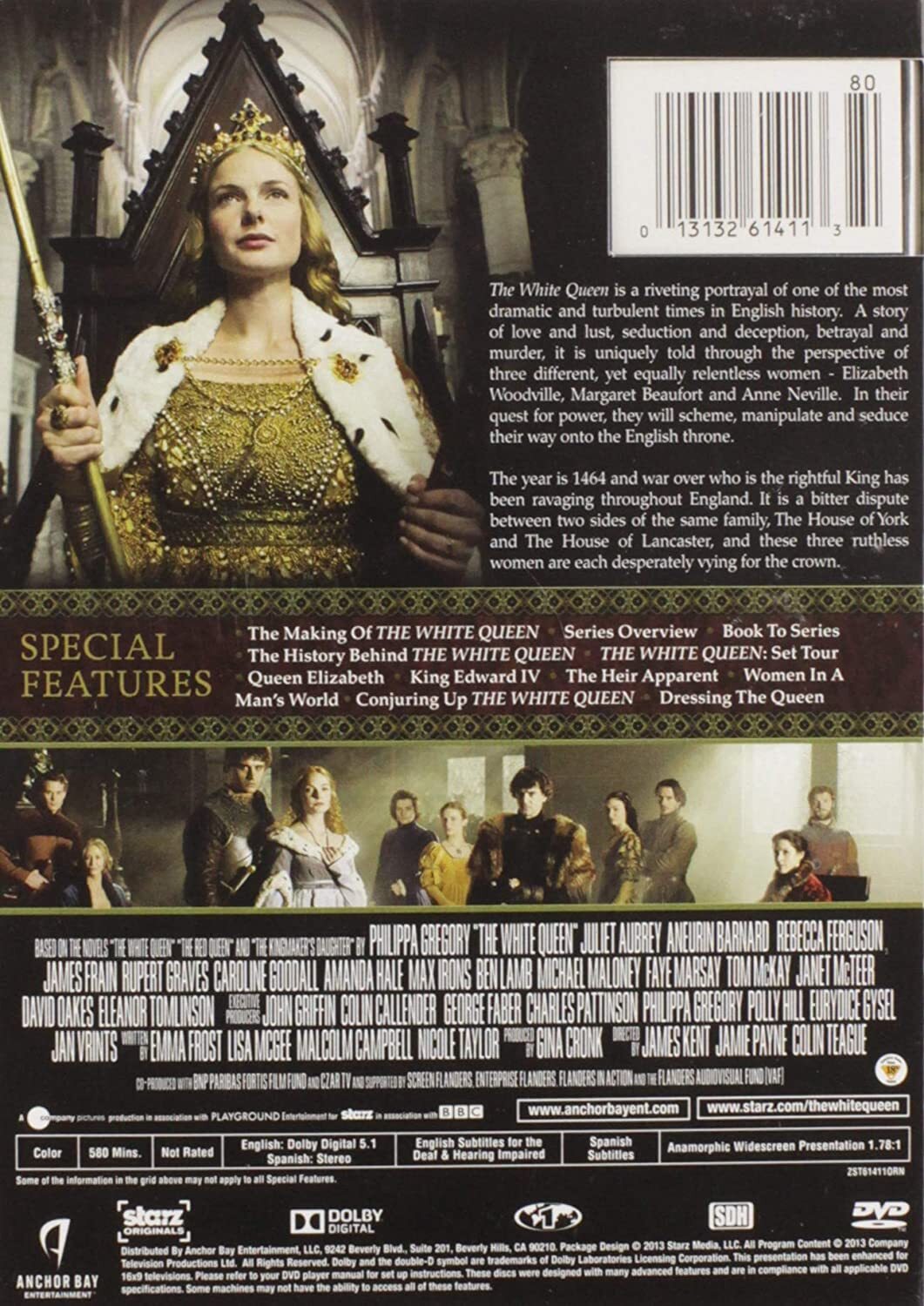 Further Details Title: The White Queen: Season 1 Format: DVD Condition: New Number Of Discs: 3 Release Date: 02/04/2014 Actors: Max Irons, Amanda Hale, James Frain, Rebecca Ferguson Audio Language: English Runtime: 9 hours and 40 minutes Region Code: DVD: 1 (US, Canada...) Studio: Lionsgate Certificate: MPAA Not Rated Description: PRODUCT DESCRIPTION THE WHITE QUEEN is a riveting portrayal of one of the most dramatic and turbulent times in English history. A story of love and lust, seduction and deception, betrayal and murder, it is uniquely told through the perspective of three different, yet equally relentless women - Elizabeth Woodville, Margaret Beaufort and Anne Neville. In their quest for power, they will scheme, manipulate and seduce their way onto the English throne. REVIEW Based on Philippa Gregory's series of best-selling novels, "The Cousins War.” Set against the backdrop of England's Wars of the Roses during the 15th century, the story revolves around women caught up in the ongoing conflict for the throne. They are some of the most ruthless players in history and will stop at nothing to support their own causes and those of the ones they love. “The White Queen” will be told through the stories of three equally driven women -- Elizabeth Woodville, Margaret Beaufort and Anne Neville -- in their quest for power as they manipulate behind the scenes of history. Series to premiere on Starz August 10, 2013. DVDs ARE REGION 1 UNLESS OTHERWISE STATED Missing Information? Please contact us if any details are missing and where possible we will add the information to our listing.