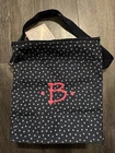 This Thirty-One Lunch tote bag is perfect for a day at the beach or a picnic in the park. The bag is designed with a blue exterior color and features an etched shells letter "B" design. It has a zip closure and measures 12 inches in width, 13 inches in height, and 7 inches in depth. The bag is made of polyester and has a nylon handle/strap material in blue color. The tote bag is insulated and has a gray lining color. The product line is Thirty-One Lunch and it is a medium-sized bag.