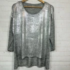 Thomas & Olivia Blouse Top Womens Size PXL Silver 3/4 Sleeve High Low Hem See measurements for accurate fit Pit to pit 22 inches Shoulder to hem 27 inches Measurements are done flat lay