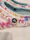 THESE TIE DYE CROCS ARE IN XCELLENT CONDITION. THEY HAVE 1 CHARM ON IT, STILL HAVE A LOT OF WARE IN THEM , WOMENS SZ 9, MEN 7 PRE-OWENED