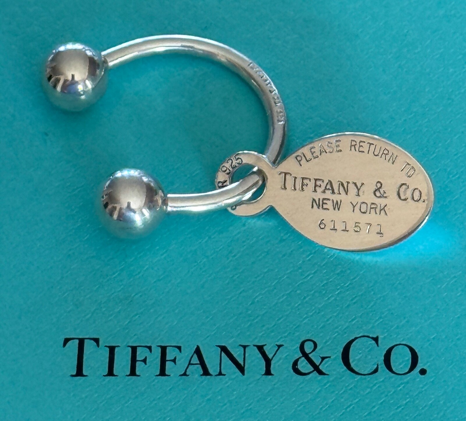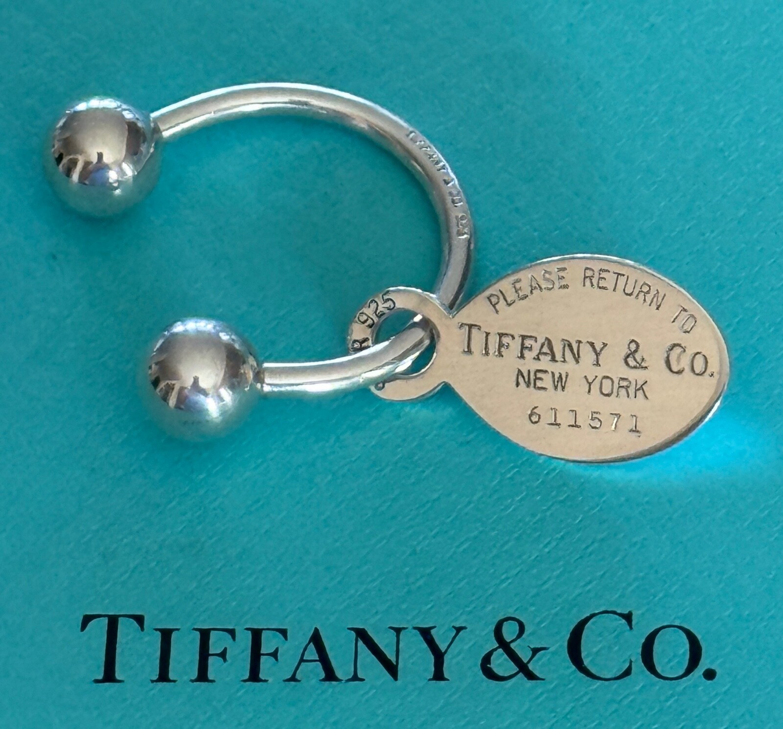 This adorable Tiffany keyring is a must-have! The sterling silver is stunning, and the classic "Please Return" engraving adds timeless charm. Perfect for gifting or treating yourself—it feels luxurious yet practical. Love the compact size, fits easily in pockets or bags. Even without the box, it’s clearly authentic and well-made. Absolutely worth it!