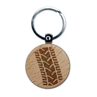 Tire Tread Track Engraved Wood Round Keychain Tag Charm
