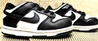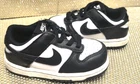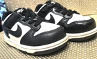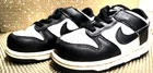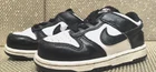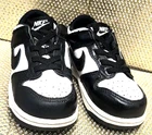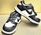 Embrace the classic look with these Nike Dunk Low Panda sneakers for toddlers. These unisex shoes, sized at 7C, feature a sleek black and white color scheme that is sure to complement any outfit. The leather upper materials provide durability while the fabric insole ensures a comfortable fit for all-day wear. The rubber outsole offers great traction for walking, school activities, and even basketball. These shoes are perfect for travel and casual outings during the summer, fall, and spring seasons. The Nike Dunk Low GS model has a low-top shoe shaft style with a standard shoe width and slip-on closure for easy wear. Order these black and white Nike sneakers for your child today!
