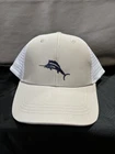 Elevate your style with this Tommy Bahama Men's Marlin Snapback Mesh Hat Cap in Navy Blue and White. Perfect for any occasion, whether it's a casual day out or a party, this hat is made with a blend of polyester and cotton material, making it lightweight and breathable. The mesh back provides extra ventilation and the 6-panel design offers a comfortable fit for all head sizes. This hat features a mid-crown and a semi-curved bill, ideal for off-road adventures, walking, hiking, fishing, and even golf or biking. With its adjustable size and solid pattern, this Tommy Bahama hat is a perfect addition to any wardrobe. It's not handmade, but it's still a great choice for any fashion-conscious man.