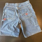 Step into classic style with these Tommy Hilfiger Red Label Carpenter Fit denim shorts. Made from 100% cotton, these vintage-inspired shorts offer durable comfort with a utilitarian edge, featuring a relaxed carpenter fit and traditional hammer loop. Details: • Brand: Tommy Hilfiger Red Label • Size: Men’s 38 • Fit: Carpenter Fit • Color: Medium wash blue • Material: 100% Cotton • Features: Belt loops, side utility pocket, hammer loop, button and zip fly Approximate flat lay measurements are in item photographs. Condition: Pre-owned with light general wear. Small stain on front right leg and back left area as pictured. Ships fast from a smoke-free home! Please feel free to reach out with any questions.
