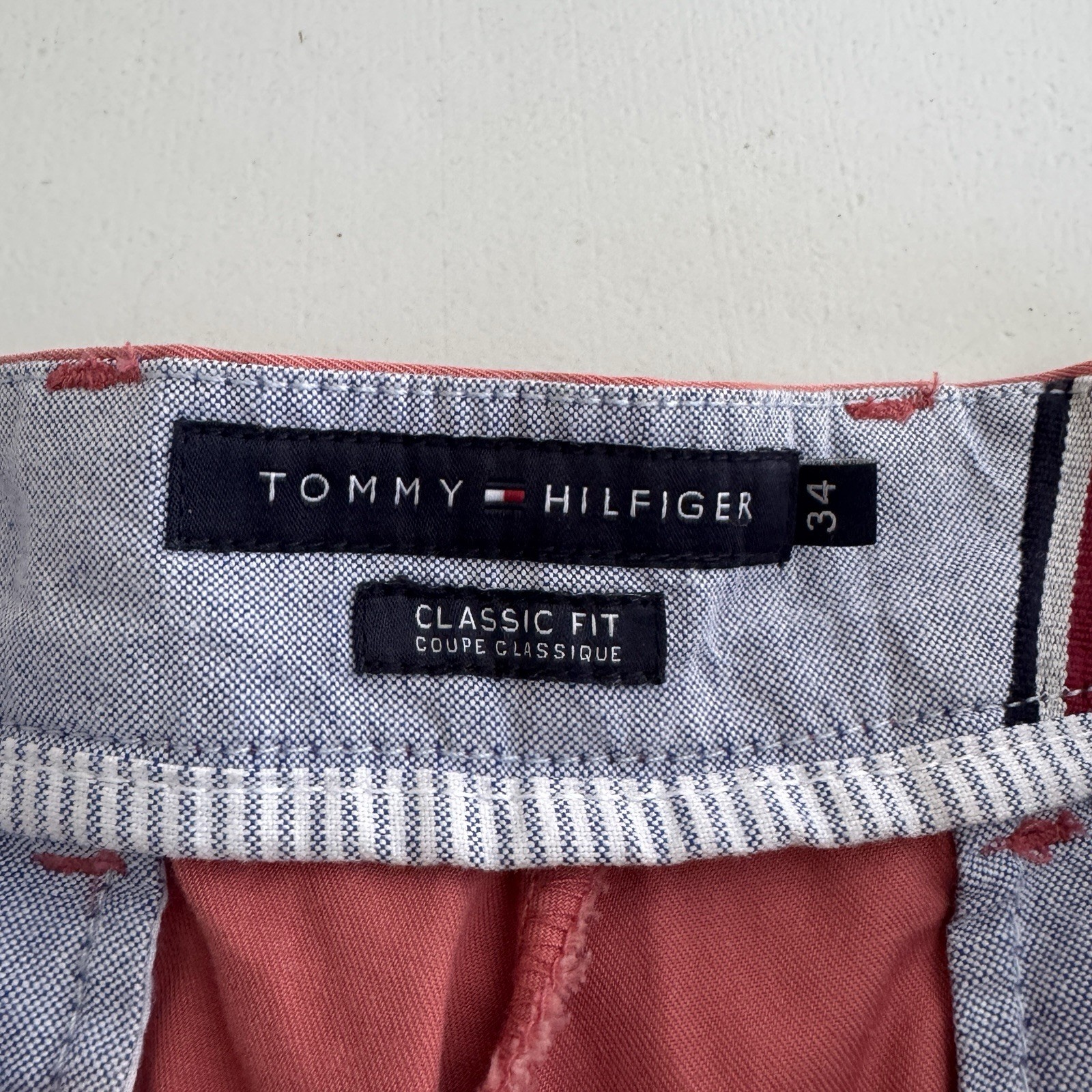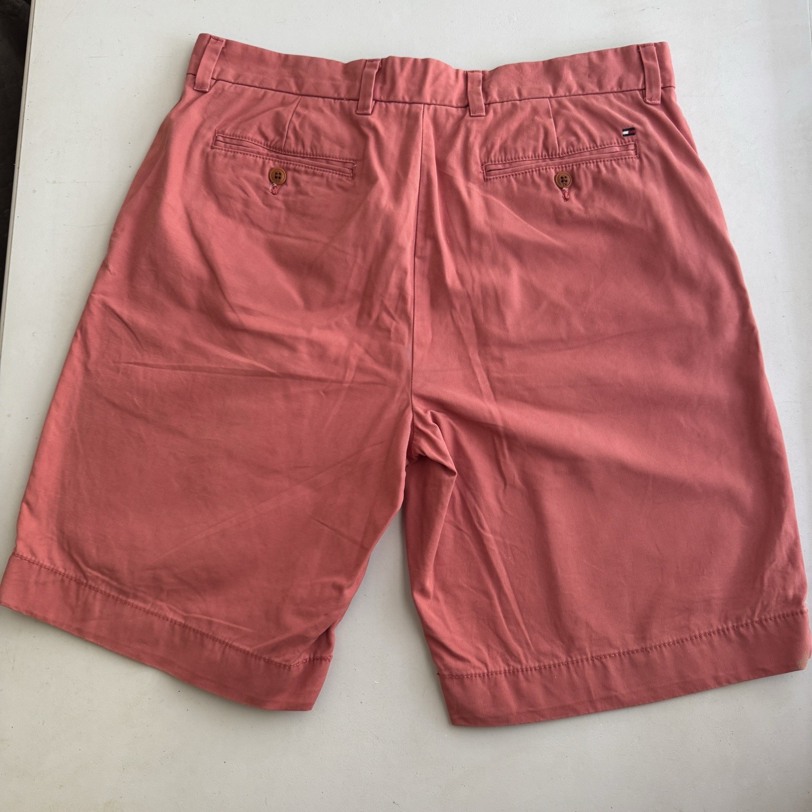 Elevate your summer wardrobe with these salmon-colored Tommy Hilfiger chino shorts. Made of 100% cotton material, these classic-fit shorts feature a flat front with a mid-rise waist and a 10-inch inseam. The 5-pocket design, accented with a button, zipper, and logo, makes them perfect for any casual occasion. These machine-washable shorts are easy to care for and can be worn to the beach, school, or city. The Tommy Hilfiger brand, known for its preppy and American university-themed clothing, adds a touch of style to your wardrobe. These shorts are perfect for any man who wants to look stylish and comfortable at the same time.