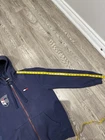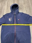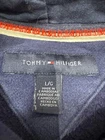 Tommy Hilfiger Navy Hoodie features a classic pullover style with a drawstring hood and kanga pocket, crafted from cozy fleece fabric. The oversized fit and long sleeves provide ultimate comfort, while the embroidered badge and logo accents add a touch of signature Tommy style. Perfect for cooler seasons, this hoodie is machine washable and ideal for casual wear or hip hop activities. Upgrade your wardrobe with this iconic piece from the Tommy Hilfiger Tommy Jeans collection in size L. Measurements shown in photos please contact if you have any questions