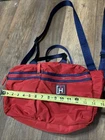 This set of two Tommy Hilfiger Sport Travel Tote Bags is a must-have for any stylish and practical traveler. These bags feature a classic designer pattern with the iconic Tommy Hilfiger logo in red, white, and blue. The bags are made of high-quality canvas material and come with double handles and a crossbody strap for easy and comfortable carrying. The bags have a zip closure and are lightweight, making them perfect for travel. They also feature inner pockets and a navy lining with logo, ensuring that your belongings are safe and organized. With their medium and small sizes, these tote bags are perfect for any occasion and are sure to make a statement wherever you go.