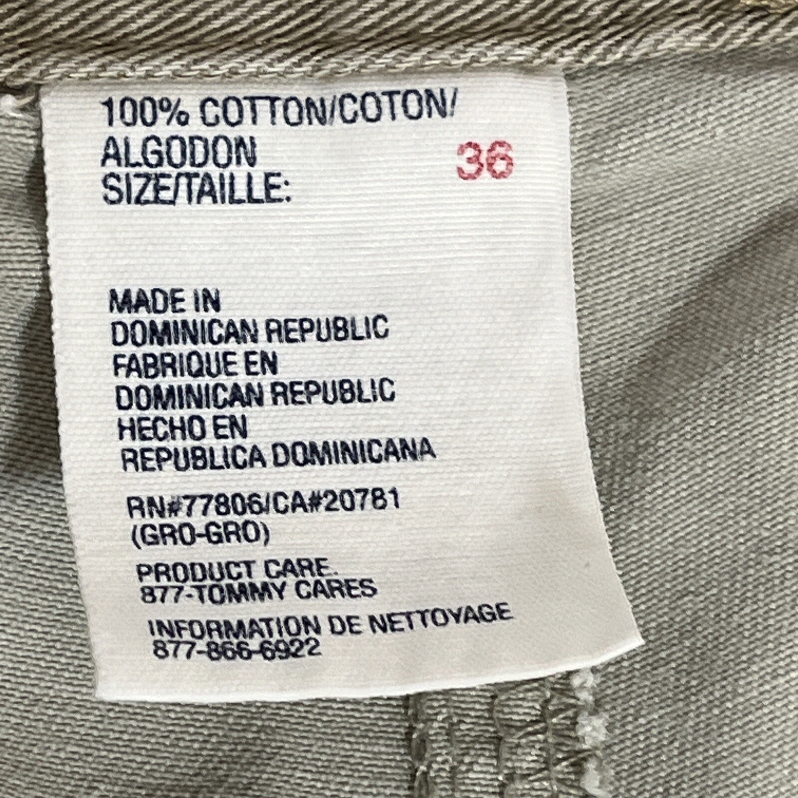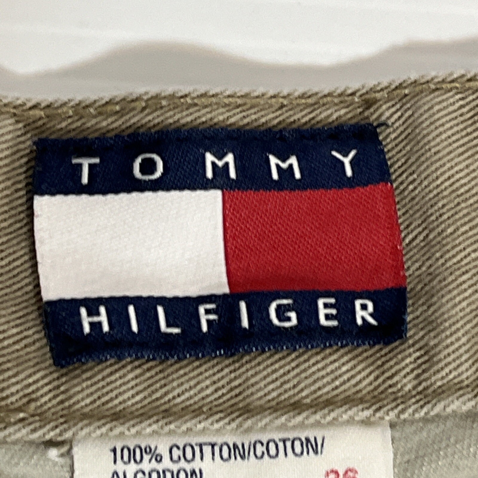 The Tommy Hilfiger Flat Front 100% Cotton Chino Shorts in Sand Khaki are a men's size 36. The shorts feature a zip closure, slash pockets, and a flat front. The fabric is canvas and the accents include a button and logo. The shorts are machine washable and can be worn in the summer, fall, and spring. The style is chino and the fit is regular. The shorts are perfect for travel and casual occasions, and the theme includes beach vibes, traditional, preppy, and classic. Very good condition - no stains or holes All clothing/fabric items have been cleaned per eBay policy standards/manufacturer's standards.