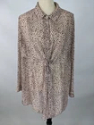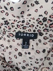 Torrid twist front tunic top in beige, pink & black leopard print Tunic length, pullover, twist front, buttons to waist, long sleeve, sheer Fabric Content - 100% polyester Care Instructions - Machine wash, tumble dry See photos for condition Size 2 - See photos for measurements R2