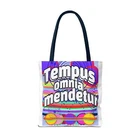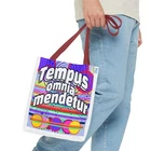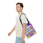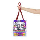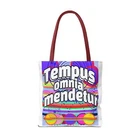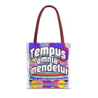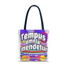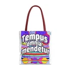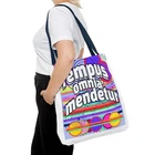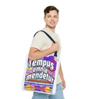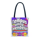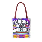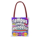 Available in 3 sizes to add both functionality and style, these custom-printed tote bags come with multiple handle colors to match your designs. Made with spun polyester, these bags feature double-stitched seams, cotton webbing straps, and nonwoven laminate lining for high-end durability. Your all-over print is created with dye sublimation for high-end visuals. .: Made with 100% polyester, a medium-weight fabric (6.49 oz/yd² (200 g/m²)) that is highly durable and perfect for everyday use. .: 5 color handle options .: All tote bags come with a non-woven laminate inside, cotton handle, and are available in 3 sizes (1x large storage compartment) so that you can match your customers' needs. .: Please note: Size tolerance ±0.75" (1.9 cm)