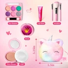 【Umicorn Toys for Girls】Kids have an innate curiosity about everything grown-up, so it is very import to offer opportunity to encourage them creative play. ULOVEME umicorns girls makeup kit has everything she’ll need to explore and create the perfect look while you watch her imagination grow as she experiments and develops her own style 【Real Makeup & Washable】Each color is perfect for kids for pretty made-up look. Easy to clean and washable with water (and light soap as needed), no need special makeup remover.No more fear of carpet-stain or furniture-marks, let her play all she wants 【Safety Kids Makeup】Our girls make up kits have passed the American toy safety test. The materials used in this kids make up kit are paraben-free and non-toxic materials. Parents trust this kit since its gentle ingredients will not burden our babies skin 【Learn from Playing】Play make up kit is a wonderful toy for little girls to have fun with their friends, it can help little girls build on their social and communication skills through play! With this kids makeup toy, Mom can teach her little girl the makeup skill, and convey a correct idea of appearances 【Great Gift】 Looking for a birthday or holiday gift that consistently brings smiles to little girls' faces? Prepare for jump-up-and-down excitement and little girl squeals when you gift this umicorn makeup for girls to your special little one any time of the year