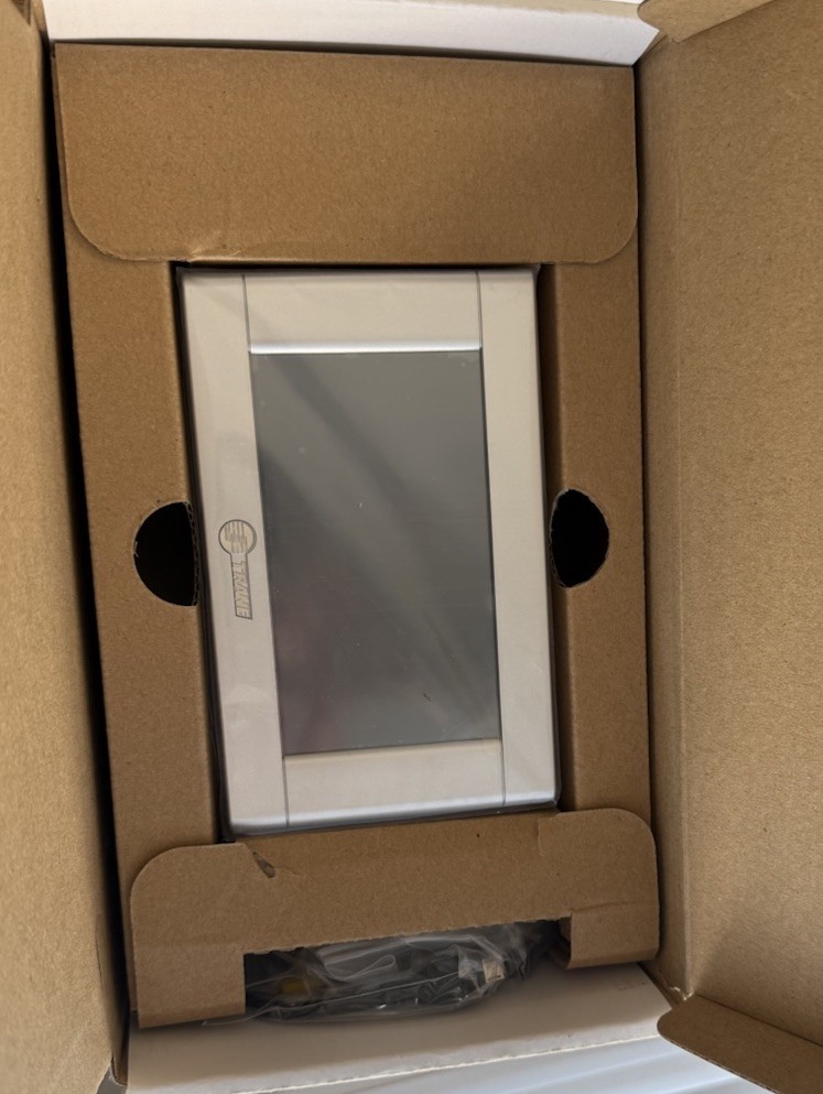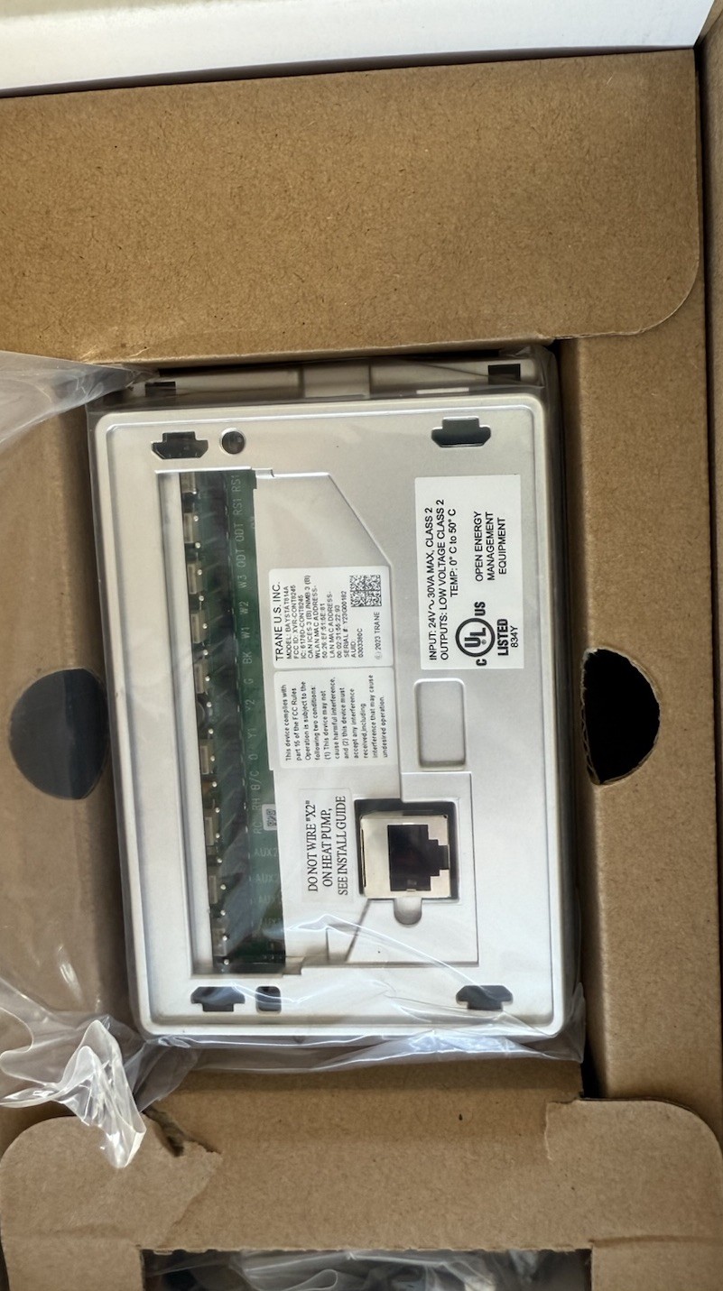 The Trane Pivot Smart Thermostat Kit BAYSTAT814A is a programmable thermostat designed for Trane systems, featuring a sleek silver rectangular design made of plastic. This thermostat is equipped with a 4-wire wire configuration, operates on a low voltage power source, and can be controlled using an app or touch interface. With its 7-day programmable schedule, 2 cool stages, and auto system switching, this thermostat offers convenient and efficient temperature control for your home heating and cooling needs.