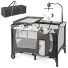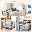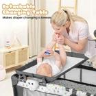 Travel Cot Foldable Baby Crib Portable Playpen Newborn Bassinet w Changing Table The crib was manufactured in 2011 or later and complies with the federal safety standards issued by the CPSC The included foldable mattress is not the sleeping mattress which you would need to buy separately. Simplify your parenting journey with this 3-in-1 portable baby playpen. Designed to adapt to your baby’s needs, it effortlessly transitions between a cozy bassinet, a secure playpen, and a convenient diaper-changing station. Perfect for babies aged 0–3 years, this all-in-one solution offers comfort, safety, and handy storage for everyday use or on-the-go adventures. Key Highlights: Versatile 3-in-1 Design: Functions as a bassinet, playpen, and changing table, meeting your baby’s needs from newborn to toddler years. Convenient Storage: Includes a removable side storage bag to keep diapers, wipes, and other essentials within reach. Safe and Sturdy Construction: Features a 7-point support structure, protective rounded corners, and breathable mesh sides for enhanced visibility and ventilation. Complies with ASTM and CPSIA safety standards. Comfortable and Engaging: Soft mattress ensures a restful sleep, while 3 hanging toys and a music box with lights and vibration entertain and soothe your little one. Portable and Easy to Move: Lockable wheels make it easy to reposition, and the foldable design with a carry bag is perfect for travel or storage. Additional Features: Durable oxford fabric is kid-friendly and easy to clean. Quick, tool-free setup makes assembly simple. Compact folding size for easy transport. Brakes on wheels ensure stability during use. Dimensions and Specifications: Overall Dimensions: 40" x 28.5" x 29" (L x W x H) Changing Table Dimensions: 28" x 18" (L x W) Mattress Dimensions: 38" x 26.5" (L x W) Carry Bag Dimensions: 29.5" x 8.5" x 8.5" (L x W x H) Weight Capacities: Diaper Table: 20 lbs Bassinet (Second Tier): 20 lbs Playpen: 33 lbs Net Weight: 22 lbs Material: Oxford cloth, sponge, metal, PP Suitable Age: 0–3 years old Why Choose This Baby Playpen? Combining versatility, safety, and portability, this 3-in-1 baby playpen is the perfect choice for growing families. Whether at home or on the go, its thoughtful design provides a cozy, secure, and engaging space for your little one while making everyday parenting tasks a breeze. Shipping information We only ship this electric hot tub to the lower 48 states and do not combine shipping or offer local pickup. We do not ship to PO Boxes or APO'S. Do not hesitate to contact us for whatever you want! Return Information We stand by every product we sell. We will do everything we can to make you happy with your purchase. Still, if, for some reason, you're not satisfied within the first 30 days after receiving the product, we will refund your money or send a replacement item. We will refund your money, excluding return shipping charges when there is a remorse return case such as Just didn't like it, Doesn't fit; Found a better price, and all other reasons not related to the item's quality. We encourage you to protect yourself from loss or theft by insuring the return shipment and sending it by a shipping carrier that offers tracking services, such as USPS Certified Mail, UPS, or FedEx. Returns must be shipped within 7 days of receiving a Return Authorization Number. Be sure to save the receipt for your records. We regret that we cannot issue any credit or refund for an item damaged, lost in shipping, or sent COD.