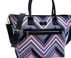 This Trina Turk crossbody purse is a stylish and versatile accessory suitable for various occasions. The bag features a striped pattern and a zip closure, with double handles and a detachable strap for convenience. It is made of high-quality leather in a multicolor design and lined with black fabric, with silver hardware accents. The interior of the bag has inner pockets for organization, and the adjustable strap allows for a comfortable fit. This designer bag is perfect for travel, workwear, or casual use. Add a touch of color and designer flair to your wardrobe with this Trina Turk crossbody purse.
